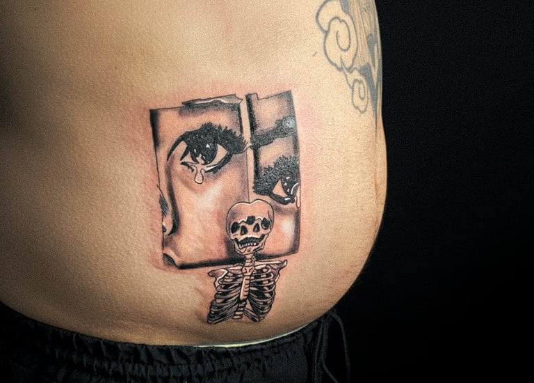 Tatuaje neotradicional y anime, trabajado de forma consciente y adaptado a cada cuerpo.